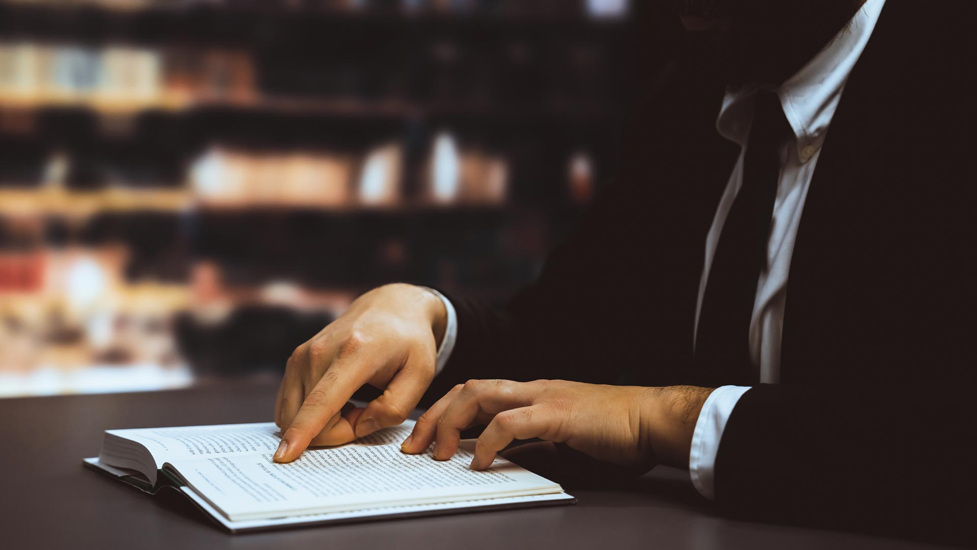 black-suitclad-businessman-lawyer-studying-book-library-equilibrium